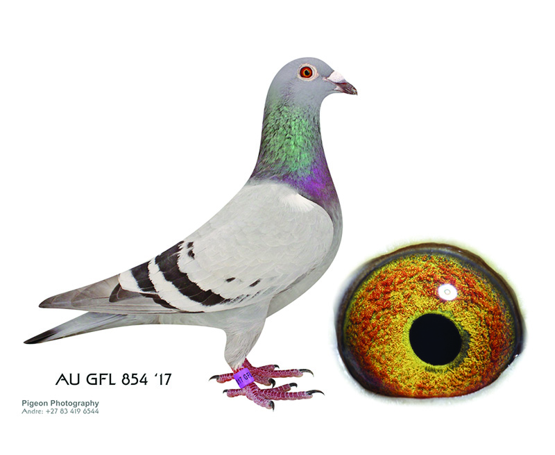AU GFL 854 17 Hen daughter of Alfonso Jr. who was 4th place grand average and 16th place in the final race of the South African Million Dollar Pigeon Race